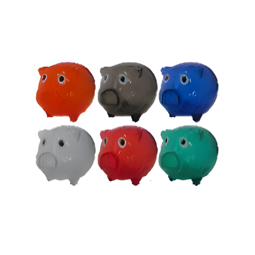 Alcancía plástica traslúcida en forma de cerdito.