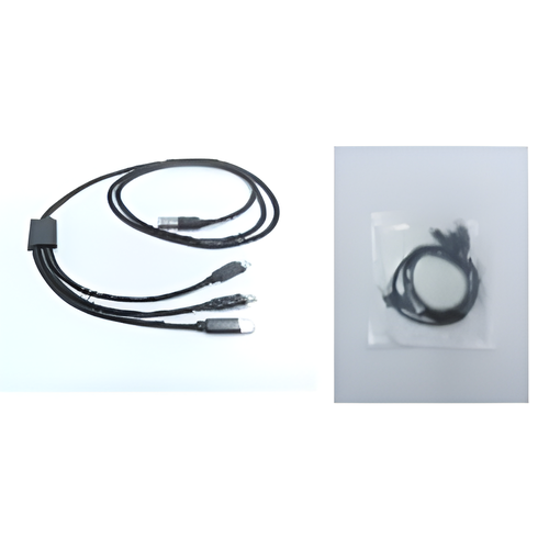 Cable multipuerto largo con conectores Android, tipo C e iPhone.