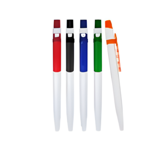 Lapicero plástico retráctil con clip traslúcido y tinta azul.