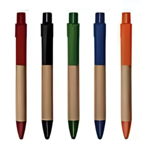 Lapicero ecológico retráctil con tinta azul y presentación individual.