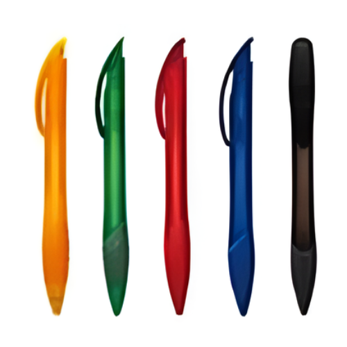 Lapicero plástico retráctil traslúcido con goma antideslizante y tinta azul.