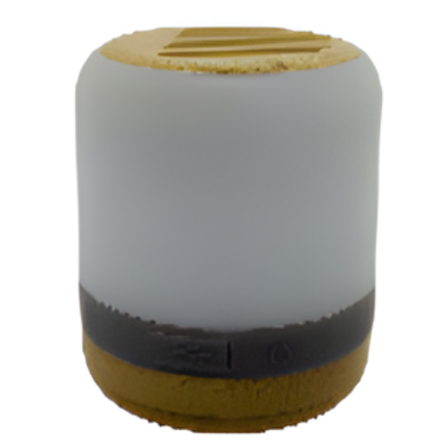 Parlante bluetooth con luz y acabado de bambú. Presentación en caja individual.