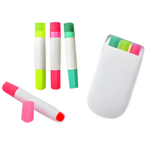 Set de resaltadores tipo crayola en estuche sólido blanco con varios colores.